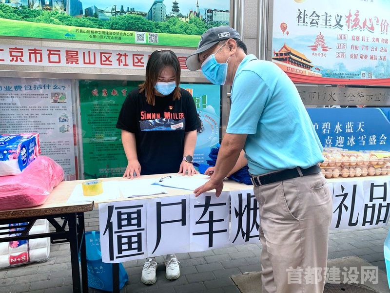 在石景山区雕塑园南街18号院内的公告栏内,贴着“超标电动车过渡期即将结束”的宣传海报。9月14日下午,居住在小区内的王大爷推着一辆旧电动车来到小区门口,门口社区工作人员热心向大爷介绍:“咱们现在用‘僵尸车’可以换取卫生纸和鸡蛋,您登个记就行。”当天开展的“僵尸车换礼品”活动,正是为超标电动车的进一步回收“添砖加瓦”。