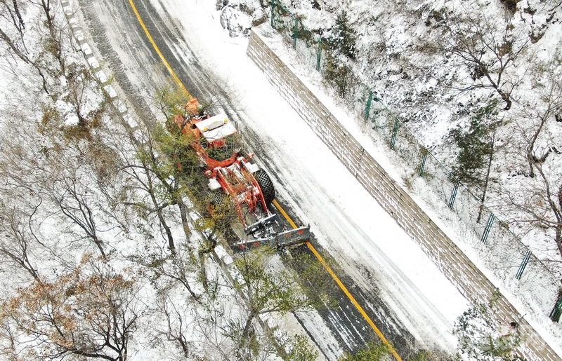 北京建工市政路桥养护集团九公路处使用大型设备对山区路段进行除雪作业 ■通讯员 范立嘉/摄
