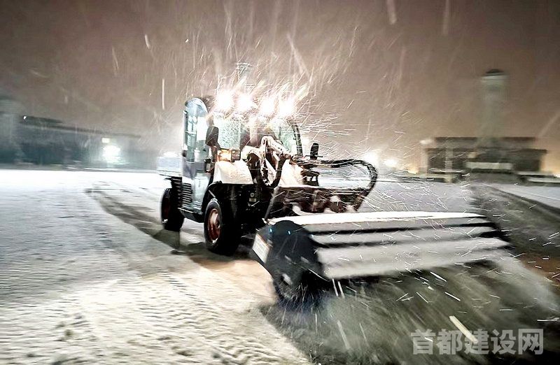 环卫集团机扫公司天安门环境服务中心工作人员冒雪奋战 ■企业/供图