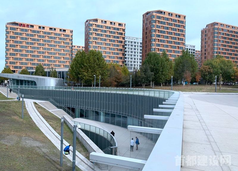 从西侧开放式草坪一路向下,便来到冬奥村生活圈地下部分。整个地下空间形似圆弧形,分为东西两部分,整体跨度超过1公里。东西两侧配备一处下沉庭院,通透的空间布局实现了地下自然采光和良好通风,也将为运动员营造高品质生活环境。