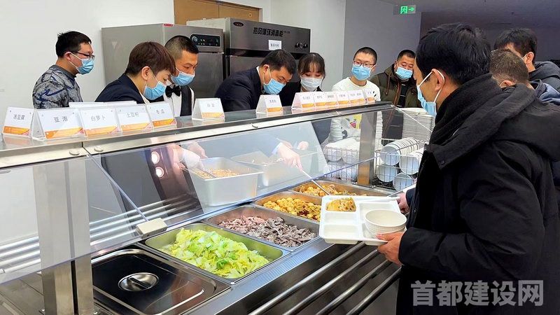 就餐人员走进延庆冬奥村员工餐厅,这个人夹一点羊肉,那个人盛一点鱼丸,每个人脸上都挂着笑容,他们三三两两围坐在一起,吃着热腾腾的涮羊肉,开心满意之余,纷纷向首旅集团延庆冬奥村餐饮服务保障工作人员竖起了大拇指。