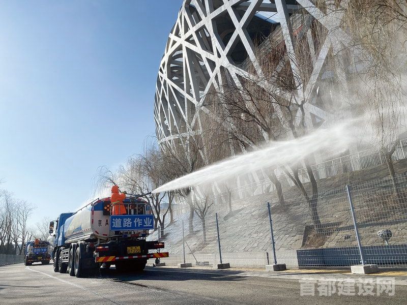 环卫集团旗下北京机扫公司奥园环境服务中心负责奥林匹克公园地区70.3万平方米作业面的综合环卫作业,其中冬奥封闭线内作业面积约43万平方米,冬奥会开幕式烟花燃放相关区域的湿化作业也由该服务中心完成。记者了解到,湿化区域主要包括湖景东路、湖景西路,慧忠路主路、辅路及绿化带,湿化作业面积达18万平方米。