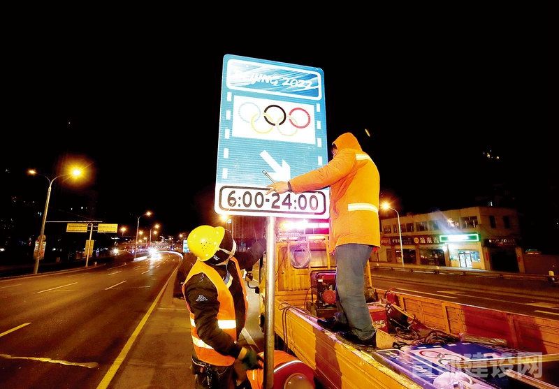 养护人员巡检冬奥标志牌 ■记者 董一鸣/摄