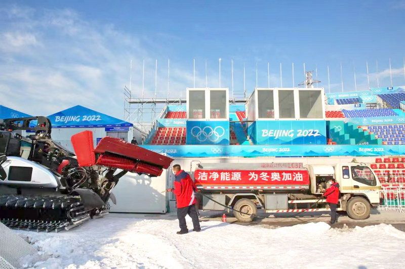 为冬奥场馆造雪用车、工程用车加注油品 ■企业/供图