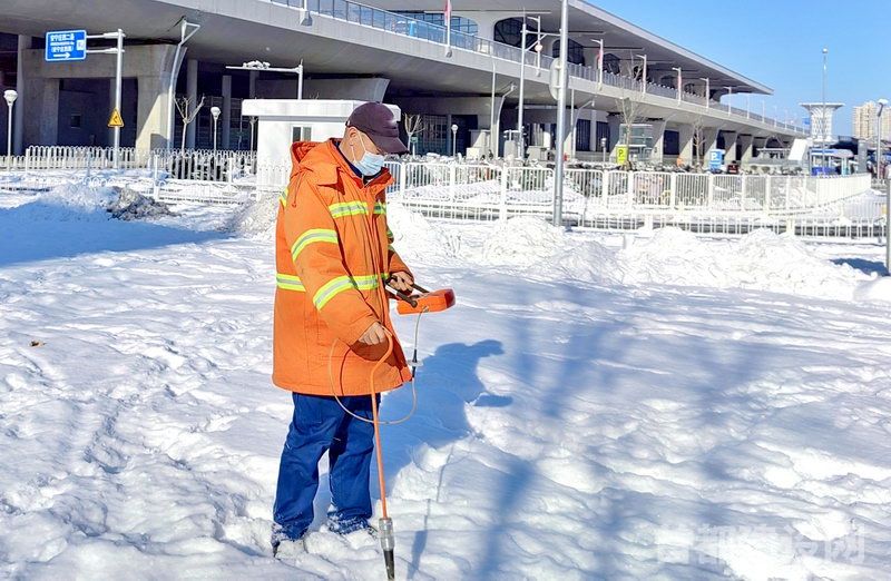 59岁的史志新是清河高铁站检测保障人员之一。上个周日,在漫天飞雪中,史志新早早便来到单位,先把工程车上厚厚的积雪清扫干净,又将工具图纸清点齐备,与同事谢国生一起出发,前往清河高铁站开展冬奥燃气服务保障工作。积雪覆盖的路面给检测工作带来挑战,平时使用小推车检测法进行的检测较为准确高效,但在雪地中却不宜采用这种方法,“680检测仪需要贴地推动前行,但是检测仪器如果进水,容易造成设备损坏。另外,积雪覆盖也容易让数据产生偏差,导致检测数据不准确。”史志新说。
