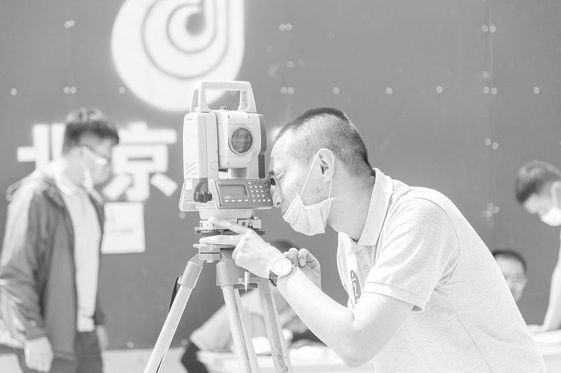 实操比赛在建工集团巨山项目施工现场举行,400余米的“L”测量比赛场地内,来自京内外12个项目部共计43名参赛选手、领队身着测量放线工装,有的在仪器前指挥棱镜确定测量点位,全神贯注地观测、记录。有的正在测量点奋笔疾书地计算点位,有的扛着标尺奔跑入点。在测量放线比武阶段,选手们按照分组前往对应场地进行水准仪与全站仪实操比赛,水准仪考验选手们的合作能力,全站仪考验选手们计算与精准放线的能力。