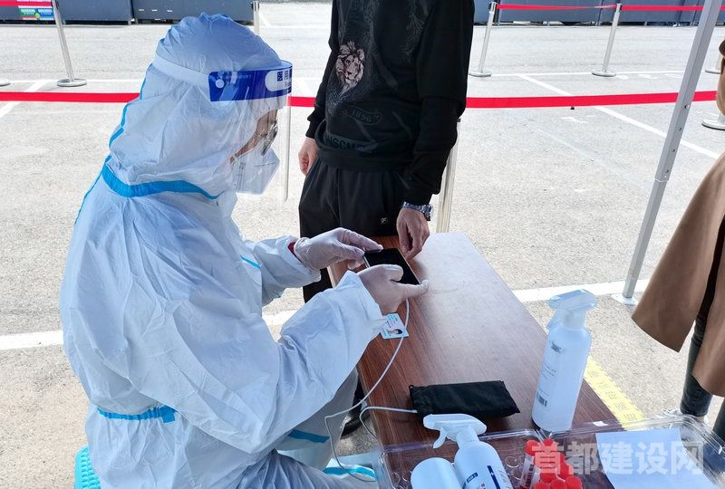 城建集团下沉干部在核酸检测中采集居民身份信息 ■企业/供图