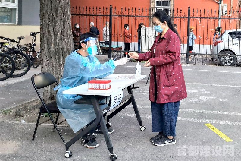 朝阳区将台洼村社区核酸检测点,北京排水集团下沉干部翁宗顺正在维持秩序,引导前来做检测的居民扫码测温,按照指引排队等待。“五一”假期以来,北京排水集团首批15人支援队伍,按照工作安排,陆续在居住地就近下沉参与社区疫情防控工作,在这场没有硝烟的抗“疫”战场上度过“不一样”的假期。