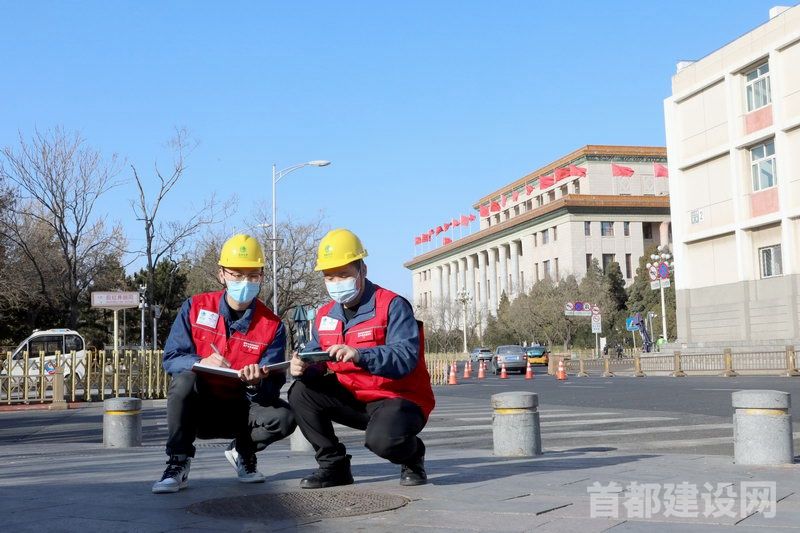 今年全国两会期间,国网北京城区供电公司工作人员在人民大会堂周边开展巡视保障       ■企业/供图