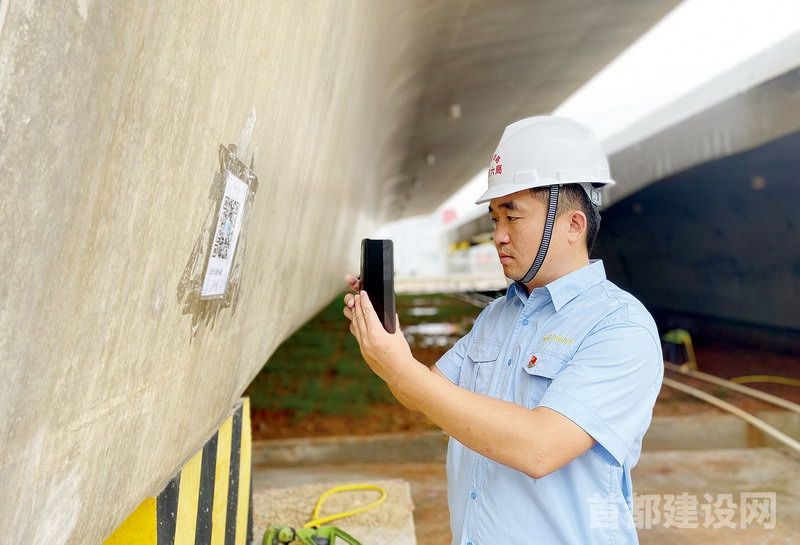 王磊扫描梁体二维码获取箱梁的技术参数 ■企业/供图