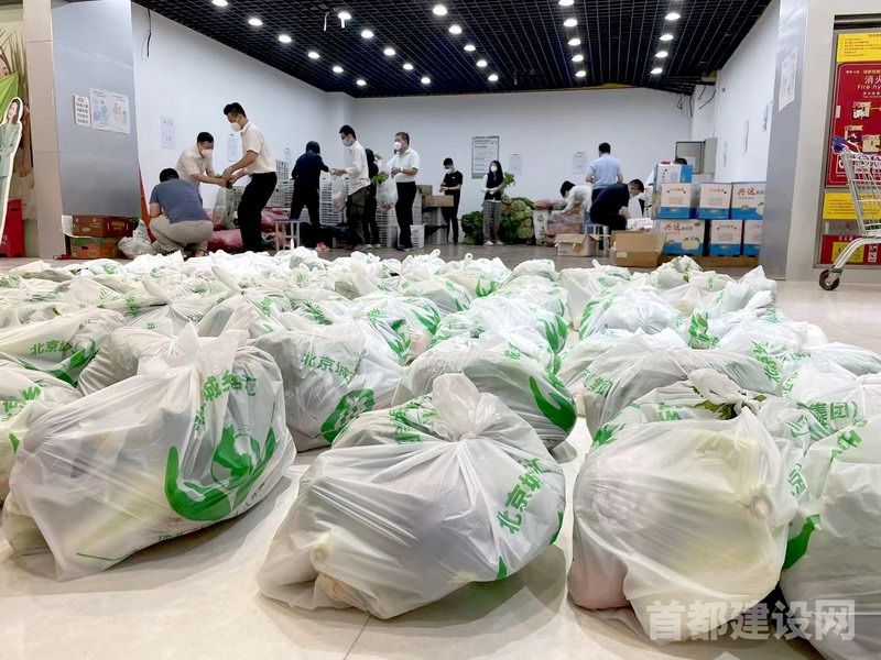 5月19日下午,丰台区小屯路118生活汇超市已为附近小区市民配送了200多份蔬菜包,并根据下单数量等信息陆续打包逐一配送。超市内,工作人员根据线上订单,将胡萝卜、土豆等8种日常蔬菜打包装袋,并在外包装上用显眼的粗体大字标注订单单元、楼层、接收人、送货人等信息,计划于第二天开始配送。
