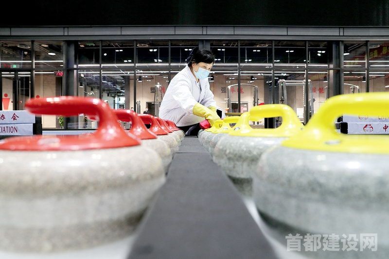 团队工作人员对冰壶进行维护保养,保障运动员训练 ■记者 董一鸣/摄