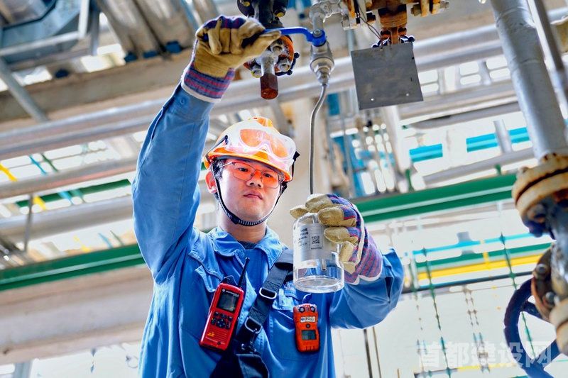 镇海炼化外操人员正在进行生物航煤采样 ■企业/供图