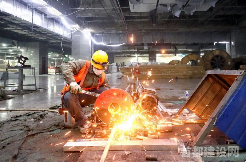 施工人员正在切割管材 ■记者 周宇杰/摄