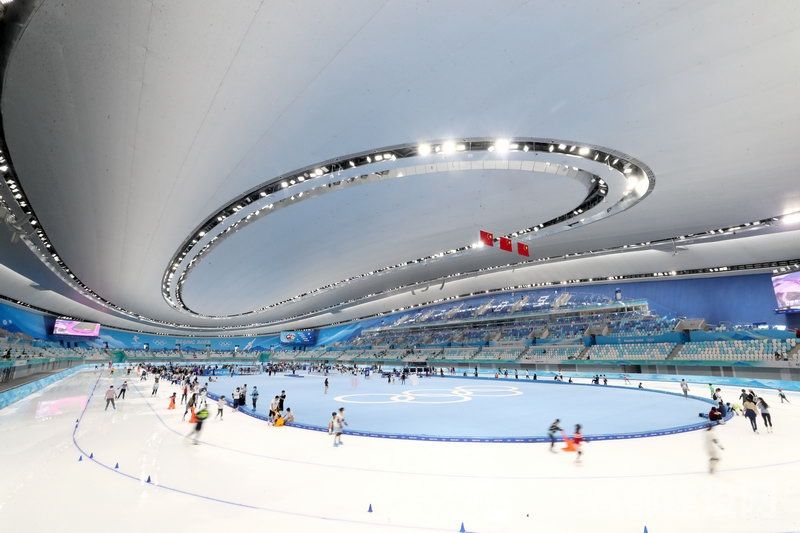 作为冬奥历史上第一个使用二氧化碳作为制冷剂的速滑场馆,“冰丝带”1.2万平方米的冰面碳排放量接近于零,在绿色、环保、可持续方面为奥运会树立了新标杆。