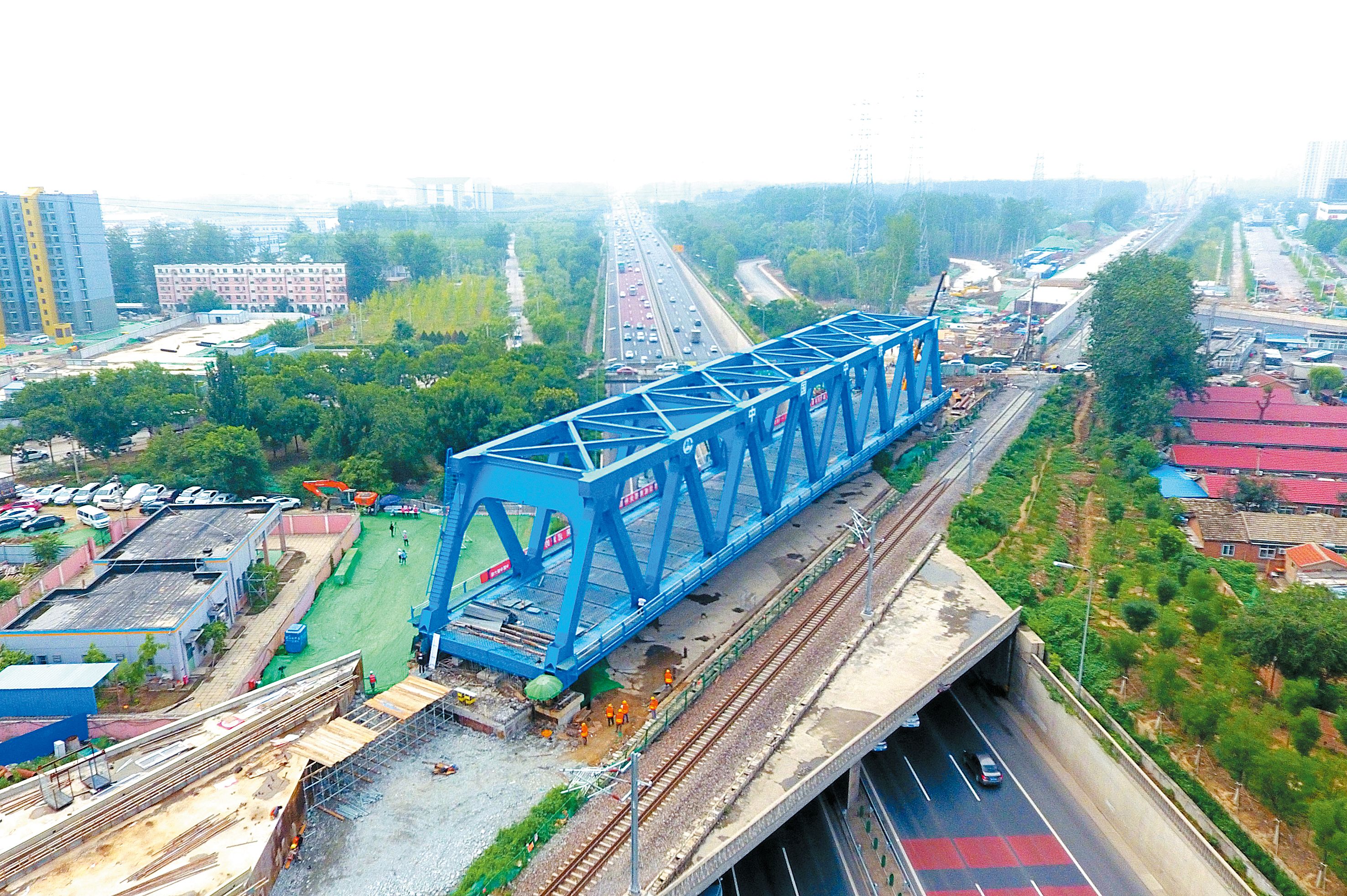 京沈客专跨五环路大桥完成精准落梁 ■记者 周宇杰/摄