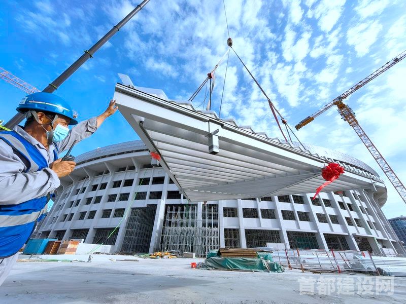 北京工人体育场改造复建工程最后一块屋面罩棚聚碳酸酯板已安装完毕 ■特约记者 王建忠/摄