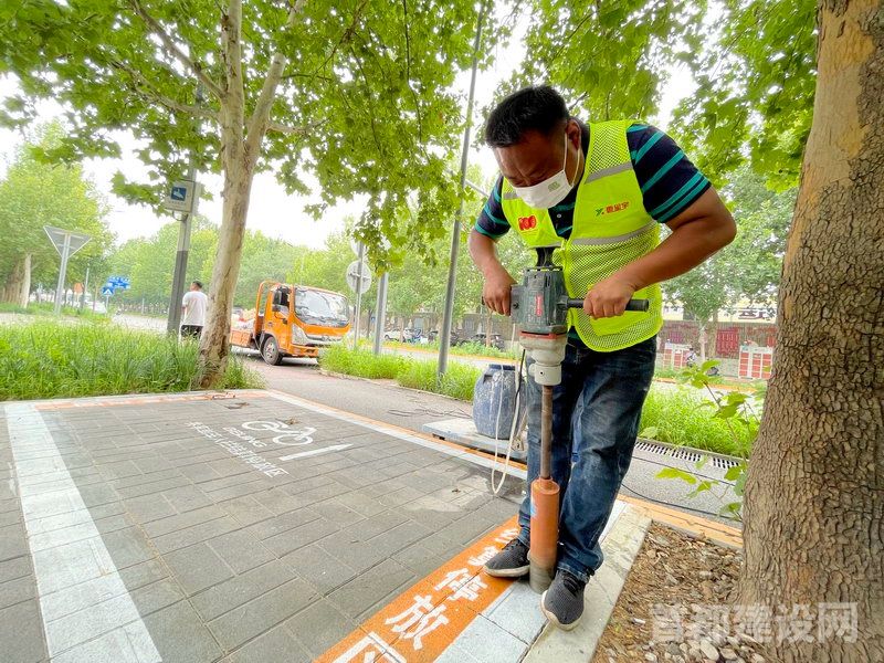 工作人员进行共享单车电子围栏蓝牙道钉安装 ■记者 刘偶/摄