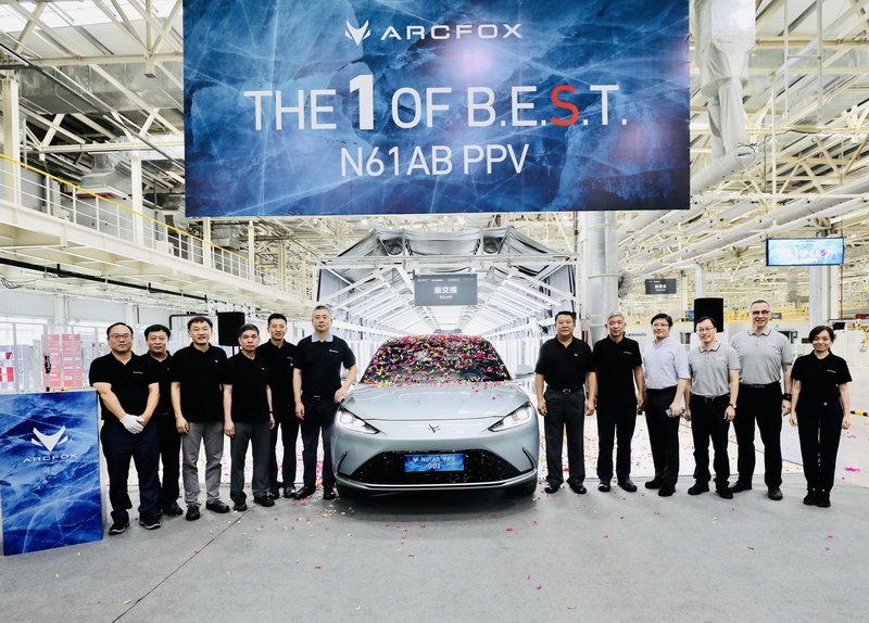 7月14日,北汽新能源ARCFOX N61首台全工序车辆下线仪式在北汽麦格纳高端智造基地举行。