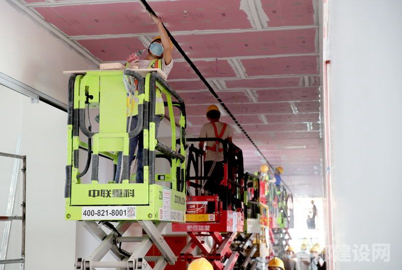 工作人员正在进行吊顶安装作业 ■记者 董一鸣/摄