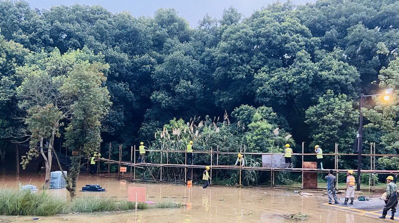 中铁建工抗洪抢险突击队搭建临时通行桥 ■企业/供图