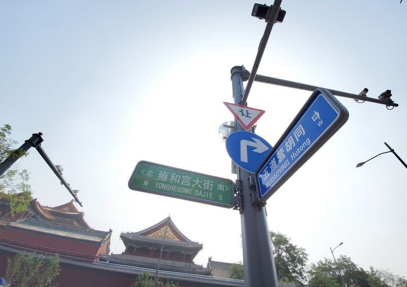 雍和宫大街灰色的综合杆与周边街景相融合 ■记者 董一鸣/摄