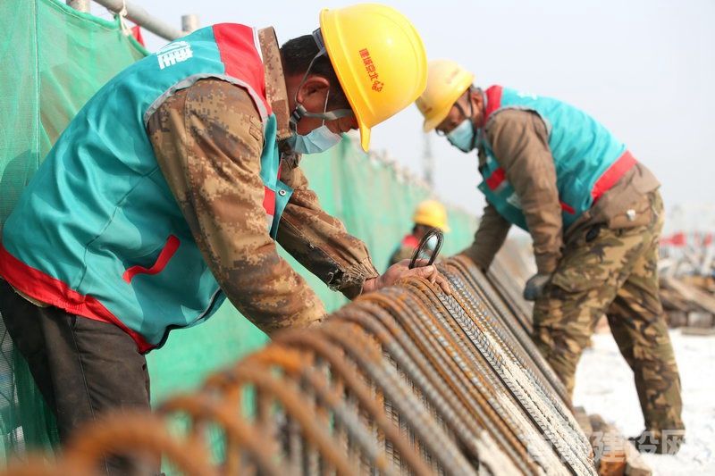 工人们正在进行钢筋绑扎作业 ■记者 董一鸣/摄