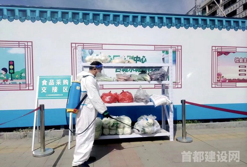 11月22日一大早,一辆满载食材的车辆停在了由北京城建集团施工的北京安贞医院通州院区建设项目外,车上人员将当天需要的各类食材整齐地码放,工作人员对“无接触食材交接区”进行消杀。车辆驶离现场后,身着白色防护服的项目工作人员随即在确认袋子封闭严密后,对食材交接区进行整体消杀,然后将食材搬入食堂。
