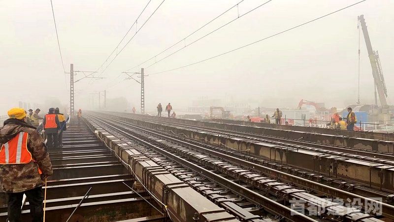 值得一提的是,下穿桥与京哈铁路交角为64.8度,在京哈线不停运的情况下顶进,给施工增加了难度。作为国内最繁忙的铁路线之一,京哈线每天开行列车110对,行车密度大、间隔时间短,只能利用“天窗期”抢工。