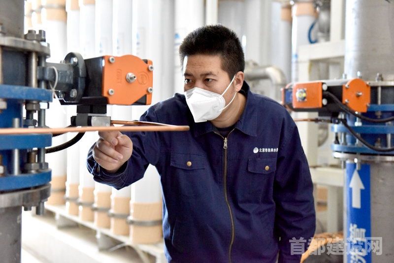 工作人员巡查郭公庄水厂供水设备。                                      ■企业/供图