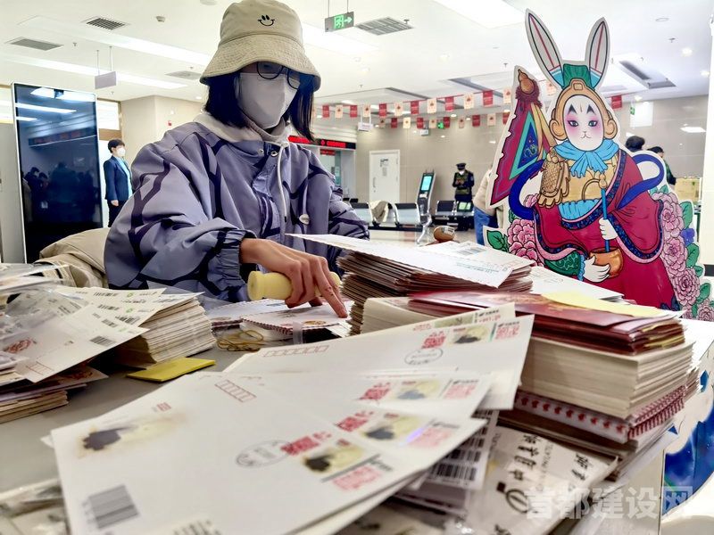 生肖贺岁季期间,为配合《癸卯年》生肖邮票发行,中国邮政以生肖地名邮戳为重点资源,在全国范围内统筹选取了20个与生肖兔有关的原地邮局,持续开展“癸卯寄福”原地邮局服务。兔儿山位于西单,是北京市区内唯一带有“兔”字的地名。隶属于西单邮政支局的兔儿山临时邮局,作为原地邮局之一,在当日既完成了生肖原地封线上预约的实际邮寄。同时,独家新增了与生肖原地封同图的“兔儿山原地纪念”彩戳特色服务,吸引了集邮爱好者纷纷前来打卡。