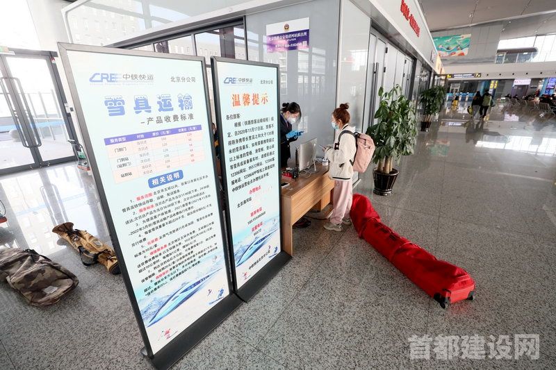 京张高铁清河站内,前往崇礼的滑雪爱好者在办理雪具托运             ■记者 周宇杰/摄
