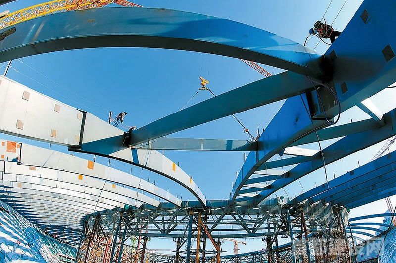 钢罩棚南北向长273米,东西向宽205米,总用钢量达1.64万吨,要让这么大体量的钢结构罩棚安全坐落于球场混凝土结构之上,项目总工王猛带领团队在安装过程中创新应用了三维摩擦摆隔震支座,通过在钢结构与混凝土结构交叉节点支座上增加竖向弹性单元,可将各类振动作用减小80%以上,确保钢罩棚安全,这在国内尚属首例。