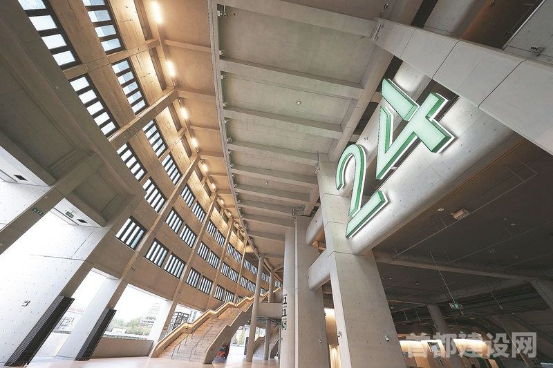 “清水出芙蓉,天然去雕饰”。新工体的清水混凝土施工堪称建筑最大亮点。不同时段、不同光照、不同天气下,移步换景的光影质感,为建筑增添了庄重典雅气质。“整个工程清水混凝土的展开面积达22万平方米,其中包括现浇清水混凝土14万立方米,预制清水看台板8300余块,称得上是目前国内体量规模最大的单体清水混凝土建筑物。”清水混凝土专业负责人李东如数家珍。