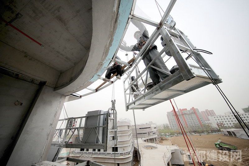 位于雄安新区安新县县城东北部的一个工地内,几名工人正在吊篮内安装建筑外幕墙铝板。该工地名为雁翎小学项目部,由北京城建集团土木工程总承包部施工,建成后可容纳1200名学生就读。目前该项目已经进入内外装修阶段,预计今年6月底实现竣工,9月具备开学条件。