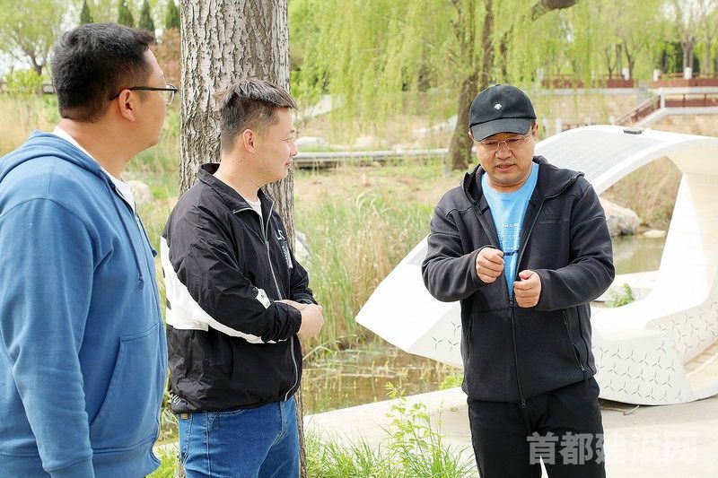 林建秋(右一)指导公园基础设施建设 ■企业/供图