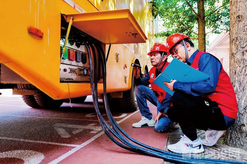 高考保障前夕,国网北京电力与北京市考试管理机构等部门持续保持密切沟通,动态跟踪考点变动情况,及时了解高考保障供电需求,优化调整保障措施和人员部署。该公司还主动与考点校建立“三级”联络对接机制,协助客户完成考点内部安全用电检查,对安检、广播、空调等重要负荷开展隐患排查和大负荷测试。“太感谢你们了,不仅主动帮我们学校把室内线路、开关等用电设备都逐一排查了一遍,还细致检查了今年高考新增加的电子设备安检门临时用电线路,让我们心里很踏实。”6月5日,海淀玉渊潭中学后勤部主任王勇对来校开展延伸服务的国网北京海淀供电公司保障团队队员王玮、常伟感激地说。