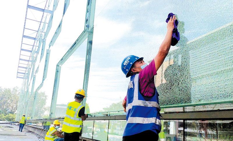 国家体育馆扩建部分玻璃幕墙施工完成            ■记者 董一鸣/摄