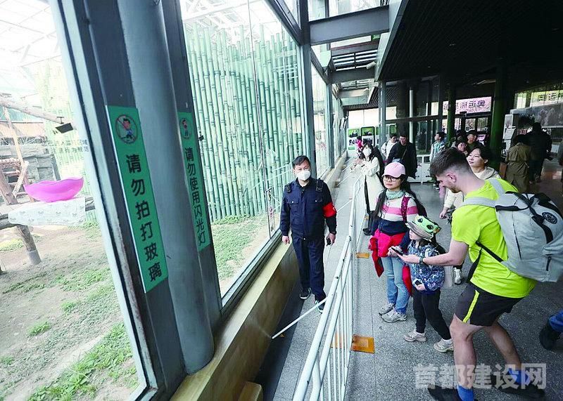 熊猫馆内,为避免游客拍打玻璃等不文明行为,北京动物园进行了物理隔离,并派专人看守 ■记者 周宇杰/摄