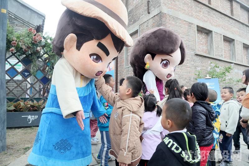 推广活动中,藏民卡通形象与小朋友们进行互动                       ■记者 周宇杰/摄