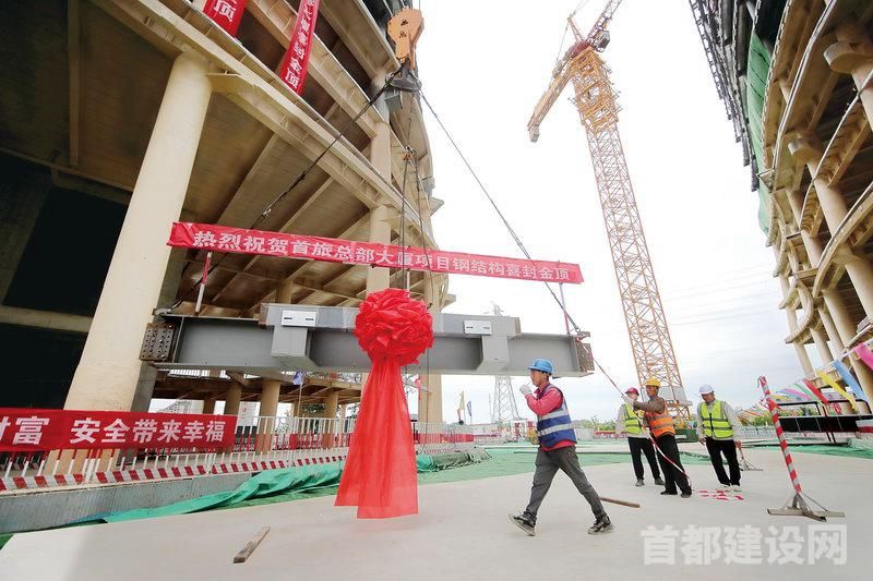 首旅总部大厦项目主体钢结构封顶 ■记者 董一鸣/摄