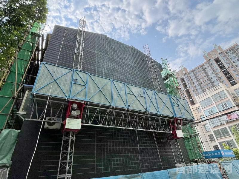 赵楼介绍,过去外立面都采用脚手架和绿色防护网,不仅占地面积大,影响业主出行,且美观性差,透明度差。为此,项目部专门投入了20余万元,引入了全新升降平台设备,全开放式作业。该设备目前工效提升了2倍,半天即可实现设备转场,安全性能、占地面积都较之前有了大幅提升。