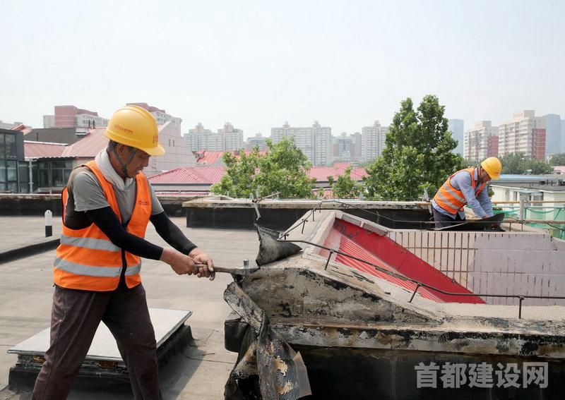 工人们正对广安小区进行屋顶防水改造 ■记者 董一鸣/摄