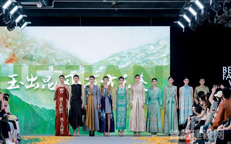 更有从和田走出来的音乐人小麦携奥古孜乐队带来民族先锋音乐,新疆特色旋律响彻秀场,和田文化氛围浓厚。据悉,本次北京时装周期间,和田艾德莱斯服饰还陆续在北京CBD、服贸会首钢园区等城市地标打卡,在9月的京城映出一道绚丽的彩虹。