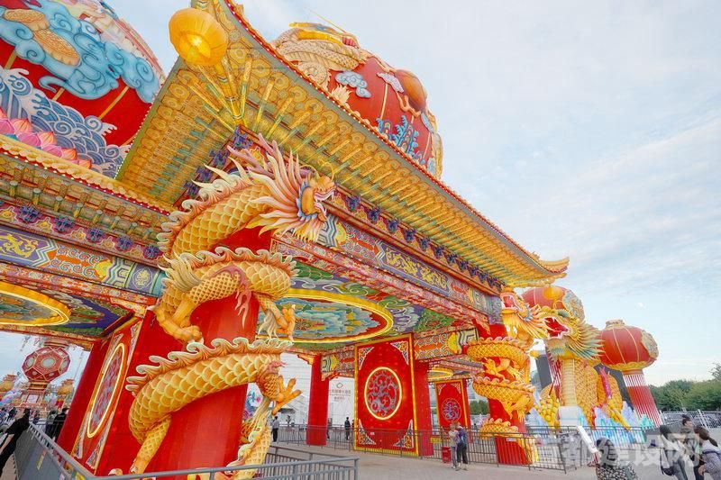 夜幕低垂,走进园博园,灯火通明,灿若星河,宛如一幅绚丽多姿的锦绣盛世画卷,九大主题区、200余组彩灯高悬,迎接着来自四面八方的游客。一道以大红色为主色调的“迎宾门”,两条长达30米的巨龙从两侧昂首腾空,成为不少家庭合影的必打卡点位。