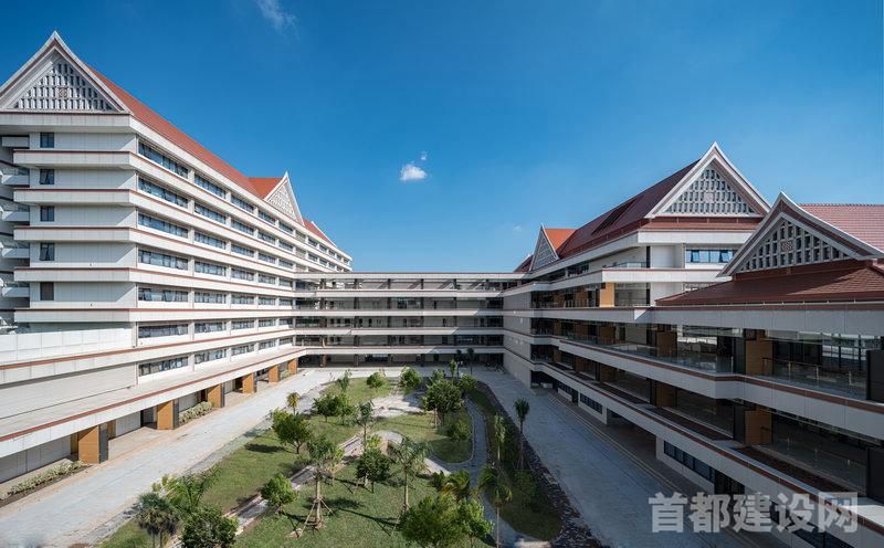 北京住总集团援老挝玛霍索综合医院技术组负责人王志刚表示,该工程的设计和建设参照中高档医院标准及当地惯例,采用中国规范,充分体现中国特色,高效打造三级医院。该工程采用先进的医疗主街理念,将功能分为医生办公模块、医疗功能模块和医疗主街模块;考虑了各功能医患流线分流和洁污流线分区;建筑设计在保持现代性和凸显地域特点的基础上,吸取当地建筑传统设计手法,充分利用坡屋顶隔热排水和自然采光、通风系统,保证室内环境质量;利用挑檐、外廊、垂直及水平遮阳等有效手段遮阳挡雨,并注意建筑构造与建筑形式的结合。该医院内综合运用当地特色花卉、灌木等绿色植物,以占总面积19.9%,高达6029.7平方米的绿化面积,打造花园式“绿色”医院,为医患人员提供优美的就医和工作环境,大大缩减了建筑空调负荷面积,实现节能降本。该医院室内装修使用的主要建筑材料全部来自中国,主要技术工人也都是中国工人,施工过程检查及竣工验收全部采用中国标准,工程质量得到老挝政府及院方的好评。