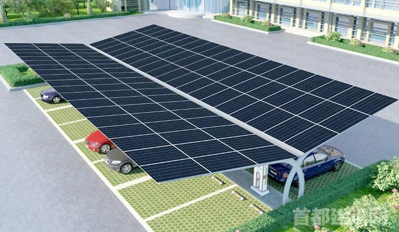 金隅智造工场内停车场车棚分布式光伏系统展示                            ■企业/供图