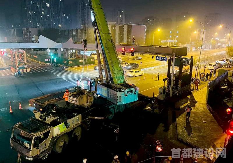 “天桥整体合拢后,下一步,将进入天桥上方拱架和相关附属设施安装环节。待完工后,即可实现天桥主体结构竣工。”李小涛告诉记者,桥梁上部采用细杆式拱形结构,是目前北京市最大规模的“口”字形人行天桥之一。“口”字形人行天桥通常应用于人流量巨大的交叉路口,目前在北京已不多见,但该路口一直是北京最繁忙的十字路口之一,采用“口”字形人行天桥,将缓解该区域的交通拥堵。