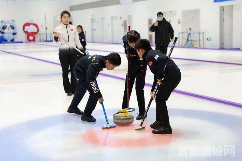 现场嘉宾与青少年代表一起体验冰壶项目 ■企业/供图