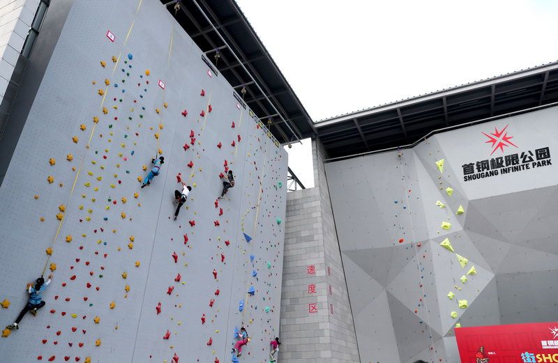 首钢极限公园攀岩区吸引了众多攀岩爱好者前来体验 记者 董一鸣/摄